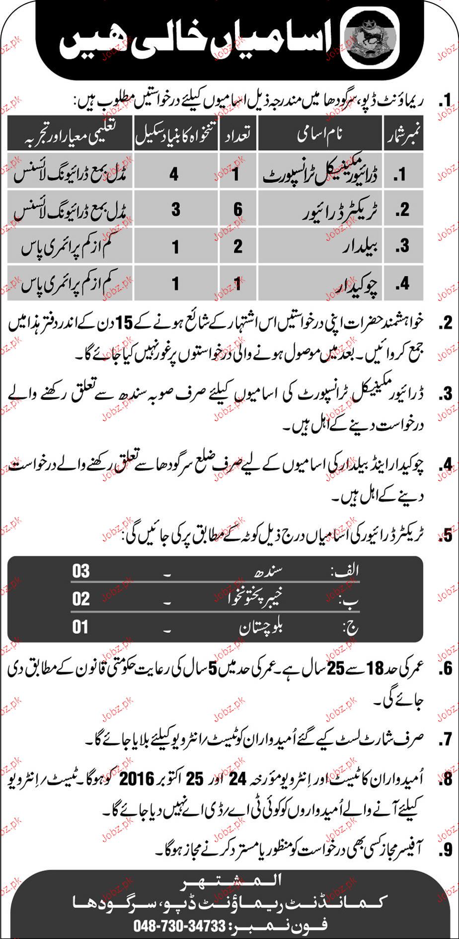 Latest Pakistan Army Driving Posts Sargodha 2025