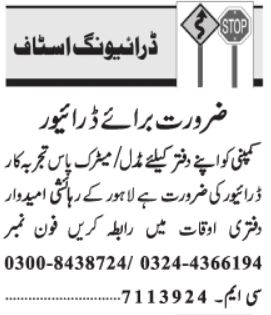 Driving Staff Jobs 2022 In Lahore