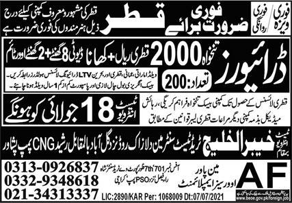 Vacant posts including driver and ltv driver are announced in AF Manpower Overseas Employment Promoters Qatar, qatar Qatar as per 16 July 2022 advertisement in daily Express Newspaper. Candidates with Matric and Intermediate etc. educational background will be preferred.