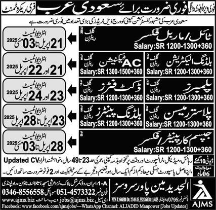 Al Jadid ManPower Services invites applications for job positions advertised in daily Express dated 18 April 2025 for following vacancies in Dammam, riyadh Saudi Arabia.