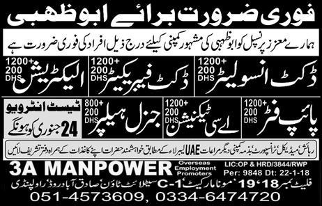 Latest 3A Manpower Overseas Employment Promoters Industrial Posts Abu Dhabi 2025