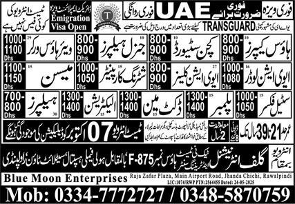 Blue Moon Enterprises is looking for candidates for following posts as per job advertisement published in daily Express Newspaper of October 2, 2025 for location Sharjah, dubai UAE: