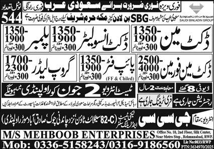 Duct Man Foreman & Group Leader Jobs 2025 In Saudi Arabia