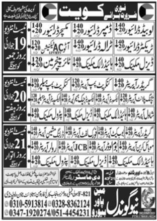New Gondal Manpower Bureau is looking for candidates for following posts as per job advertisement published in daily Mashriq Newspaper of July 20, 2024 for location Kuwait, kuwait Kuwait:
