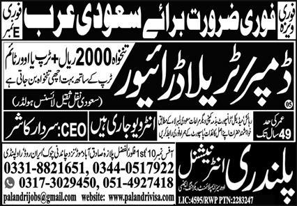 Latest Palandri International Overseas Recruiting Agency Driving Posts Jeddah 2025