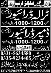 Twin Cities International Overseas Employment jobs advertisement dated about 23 October 2024 in daily Express Newspaper invites application for the vacant post of htv driver, dumper driver, driver and traila driver in Dammam, al khobar Saudi Arabia. Preferred Education is Matric and Intermediate etc.