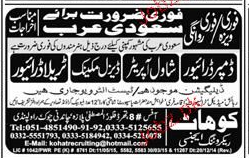 Dumper Drivers, Shawal Operators Job Opportunity
