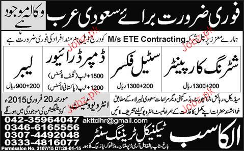 Dumper Drivers, Shuttering Carpenter Job Opportunity
