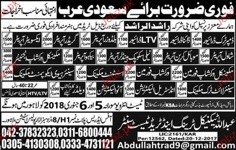 Latest Abdullah Technical Training & Trade Test Center Driving Posts Saudi Arabia 2025