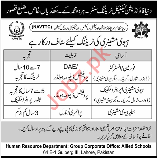 Dunya Foundation Technical Training Center Kasur Jobs 2018
