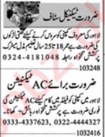 Vacant posts including technical staff and ac technician are announced in Factory Lahore, lahore Punjab Pakistan as per 11 March 2024 advertisement in daily Dunya Newspaper. Preferred Education is DAE, Matric and Intermediate etc.