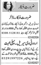 Dunya Sunday Classified Ads 12 Oct 2025 For Actors