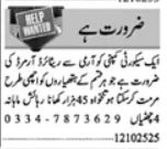Security Company invites applications for job positions advertised in daily Dunya dated 13 October 2025 for following vacancies in Lahore, lahore Punjab Pakistan.