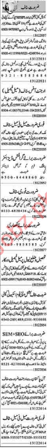 Dunya Sunday Classified Ads 13 Dec 2020 For Office Staff