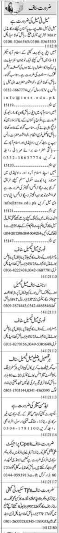 Dunya Sunday Classified Ads 14 Nov 2021 for Management