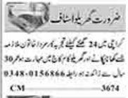 House Karachi, karachi Sindh Pakistan invites applications from eligible candidates for the post of cook, house maid, chef and maid as per advertisement of April 18, 2022 published in daily Dunya Newspaper. Candidates with Primary, Middle and Matric etc. educational background will be preferred.