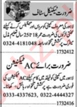 Factory jobs advertisement dated about 18 March 2024 in daily Dunya Newspaper invites application for the vacant post of maintenance technician, service advisor and ac technician in Lahore, lahore Punjab Pakistan. Preferred Education is Intermediate, Matric and Middle etc.