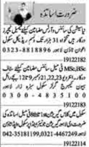Dunya Sunday Classified Ads 19 Dec 2021 For Teaching Staff