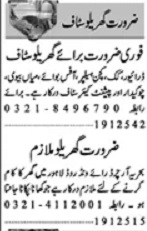 Dunya Sunday Classified Ads 19 Jan 2025 For Domestic Staff