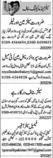 Dunya Sunday Classified Ads 20 March 2022 For Sales Staff
