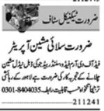 Factory jobs advertisement dated about 22 January 2024 in daily Dunya Newspaper invites application for the vacant post of fedo machine operator and sewing machine operator in Lahore, lahore Punjab Pakistan. Middle and Matric etc. educational qualification will be preferred.