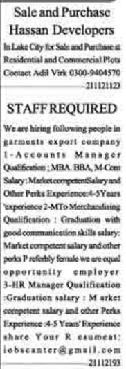 Dunya Sunday Classified Ads 21 Nov 2021 For Sales Staff