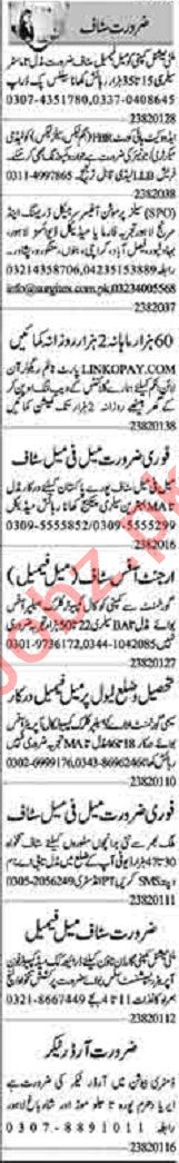 Dunya Sunday Classified Ads 23 Aug 2020 For Office Staff