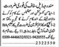 Dunya Sunday Classified Ads 23 Feb 2025 For General Staff