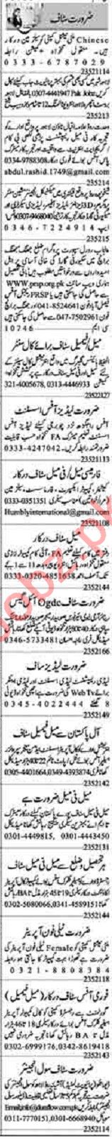 Dunya Sunday Classified Ads 23 May 2021 For Office Staff