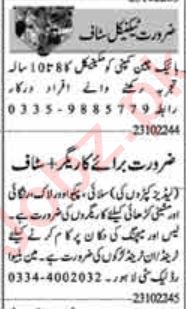 Dunya Sunday Classified Ads 23 Oct 2022 For Technical Staff