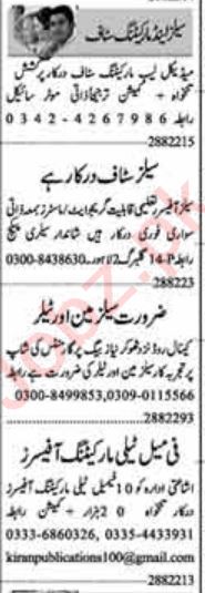 Vacant posts including salesman, marketing staff, marketing officer, sales officer, tailor, sales staff and telemarketing officer are announced in Marketing Company Lahore, lahore Punjab Pakistan as per 29 August 2022 advertisement in daily Dunya Newspaper. Persons with Bachelor, Intermediate, Matric and Middle etc. education can apply.