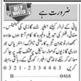 Vacant posts including helper and munshi are announced in Private Company Malir Karachi, karachi Sindh Pakistan as per 29 September 2025 advertisement in daily Dunya Newspaper. Preferred Education is Intermediate and Matric etc.