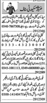 Dunya Sunday Classified Ads 29 Jan 2023 for Security Guards