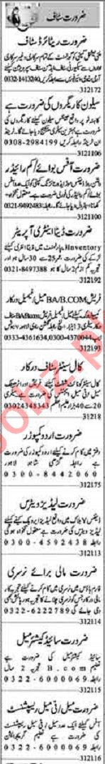 Dunya Sunday Classified Ads 3rd Jan 2021 For Office Staff