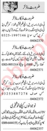 Dunya Sunday Classified Ads 4 June 2023 for Models