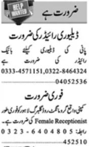 Vacant posts including salesman and driver are announced in Ice Cream Company Kot Lakhpat Lahore, lahore Punjab Pakistan as per 5 May 2025 advertisement in daily Dunya Newspaper. Educational qualifications required Middle, Intermediate and Matric etc.