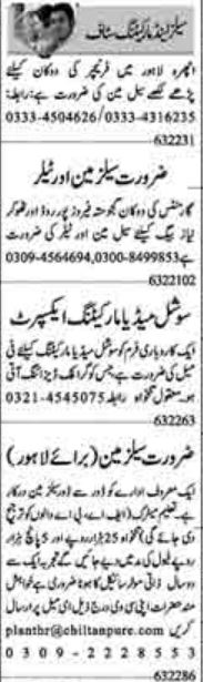 Dunya Sunday Classified Ads 6 March 2022 For Sales Staff
