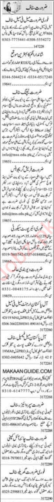 Private Company invites applications for job positions advertised in daily Dunya dated 1 August 2022 for following vacancies in Islamabad, rawalpindi Islamabad Pakistan.