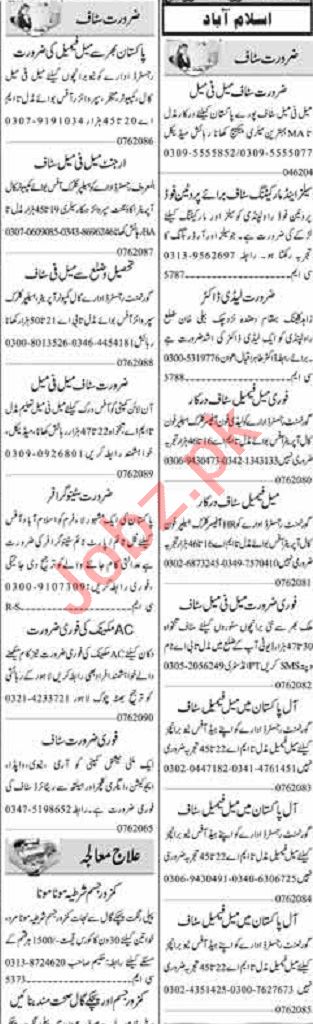Field Officer, Supply Man, Doctor, Hospital Administrator, Clerk, Admin Officer, Data Entry Operator, Cashier, Manager, Sales Staff, Computer Operator, Careem Driver, Uber Driver, Marketing Staff, Delivery Boy, Call Operator, Office Assistant, Hotel Manager, Sweeper, Recovery Officer, Pharmacist, Welder, Electrician seeks in well known companies and hospitals.
