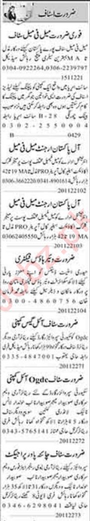 Private Company invites applications for job positions advertised in daily Dunya dated 21 November 2022 for following vacancies in Karachi, karachi Sindh Pakistan.