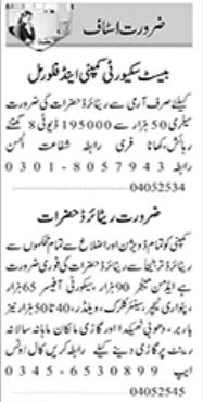 Private Company Karachi, karachi Sindh Pakistan invites applications from eligible candidates for the post of security guard, patwari, dhoobi contractor, teacher, welder, barber, clerk, security staff and security officer as per advertisement of May 5, 2025 published in daily Dunya Newspaper. Candidates with BA, Bachelor, Intermediate, DAE, Middle and Matric etc. educational background will be preferred.