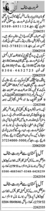 Dunya Sunday Lahore Classified Ads 22 June 2025