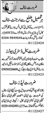 Dunya Sunday Multan Classified Ads 1st Dec 2024
