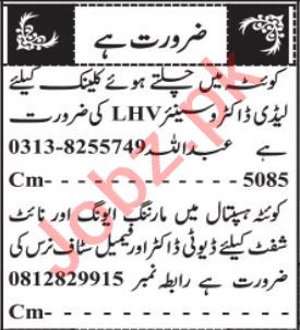 Duty Doctor & Staff Nurse Jobs 2021 In Quetta