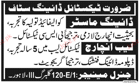Apply as per details in job advertisement. Login to view further details of how to apply via https://www.jobz.pk online.