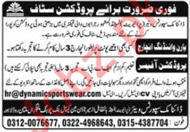 Vacancies in Dynamic Sportswear Pvt Limited Advertisement November 2020