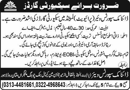 Latest Dynamic Sportswear Pvt Limited Security Posts Lahore 2025