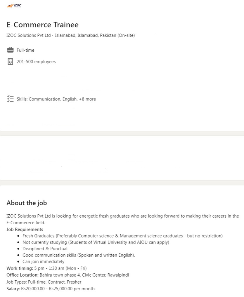 Latest IZOC Solutions IT Posts Islamabad 2025