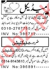 ECG Technician & Lady Doctor Jobs 2021 In Peshawar
