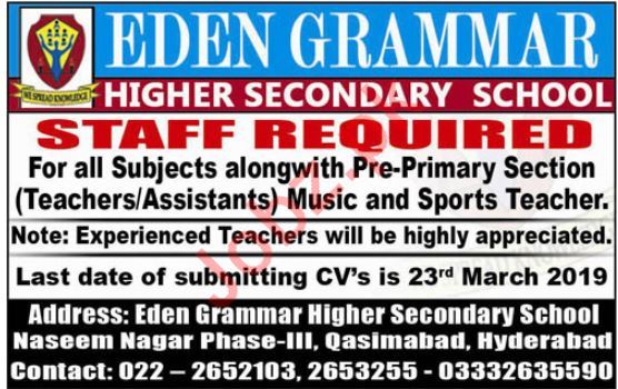 Eden Grammar Higher Secondary School Teaching Jobs 2019